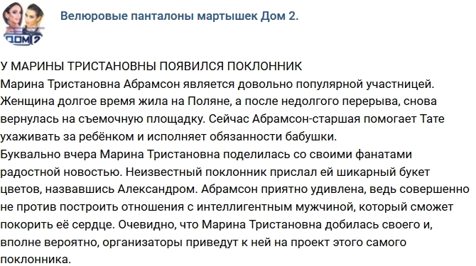 Мать Таты Абрамсон призналась, что получила цветы от тайного поклонника.