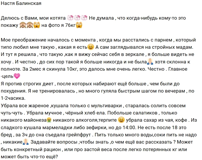 Анастасия Балинская: На этом фото я вешу 76 кг