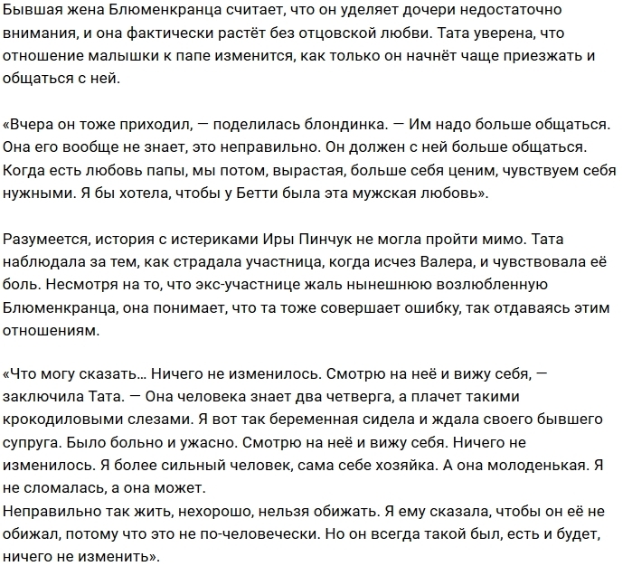 Тата Блюменкранц: Я не могла смотреть на его слёзы