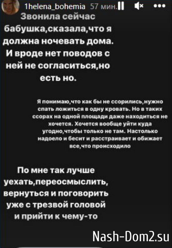 Расстроенная Алёна Опенченко вышла на связь с подписчиками и рассказала им об очередной ссоре с Михаилом Козловым. Чтобы отойти от скандала, девушка отправилась с ночёвкой к подруге, но в итоге её отругала бабушка.