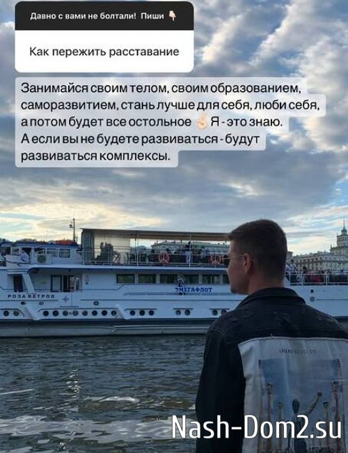 Один из подписчиков Дмитрия спросил у него, как пережить расставание. Мужчина посоветовал заняться своим образованием, телом и саморазвитием, тогда всё остальное приложится. Если же не развиваться, то появятся никому не нужные комплексы. По словам Дмитренко, нужно стать лучшей версией себя и в первую очередь нужно любить себя, тогда всё будет хорошо и боль от расставания быстро пройдёт.