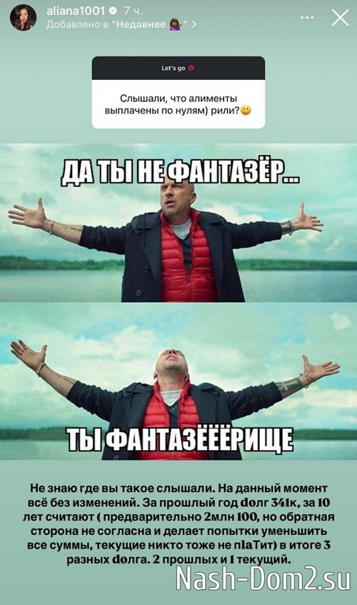 Алиана Устиненко заверила своих подписчиков, что бывший муж продолжает увеличивать свой долг по алиментам.