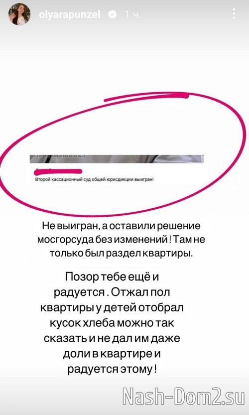 Ольга Рапунцель прокомментировала последнее решение кассационного суда и радостный пост своего бывшего мужа.