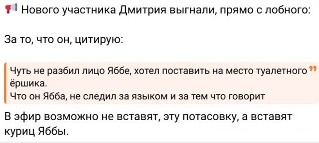 Руку на Яббарова поднимать нельзя ни в коем случае, какую бы ересь он не нес в чужой адрес, примерно так выглядит логика создателей этого реалити-шоу.