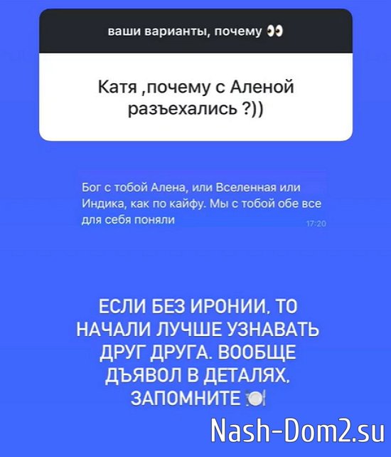 Алёна "подставила" Горину и осталась в Таиланде, хотя девушки приехали на работу в Дубаи вместе. Своим фолловерам Алёна призналась, что устала улыбаться без причины и переступать через себя.