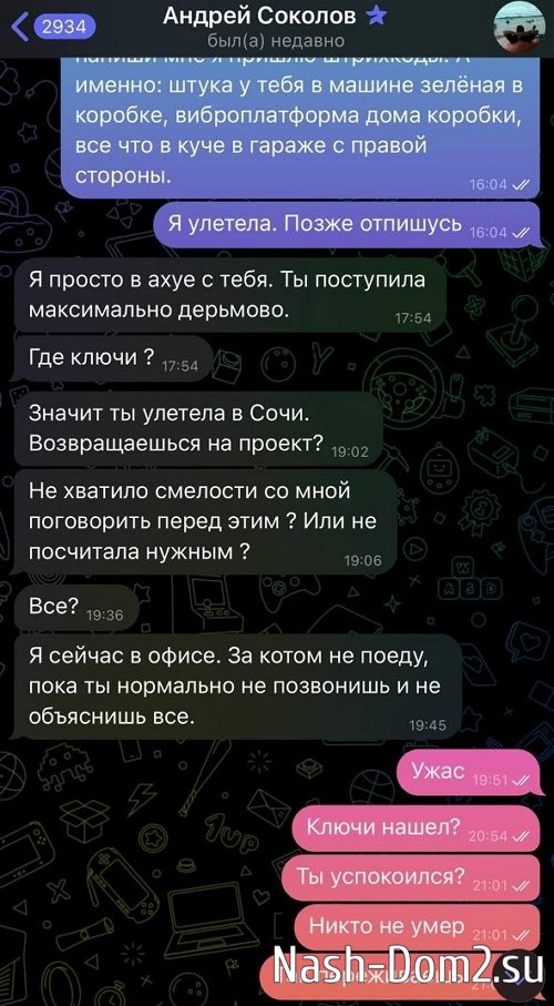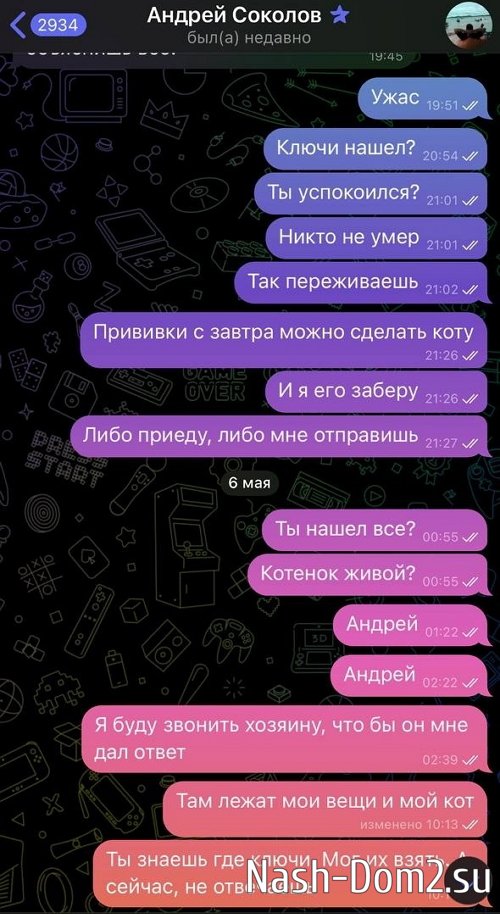 Всем привет! Я нахожусь в Сочи, а Андрей остался в Москве. Я уехала ни кого не предупредив приняв решение спонтанно. На что, получила от всех поздравления, кроме этого человека. Я думала, что ему можно будет доверять и расчитывать. Андрей не выходил на связь, не отвечал на сообщения. Я просила его заехать на квартиру, которую он снимал для меня и посмотреть за котом. Так же, доделать дела в срок, которые я не успел.