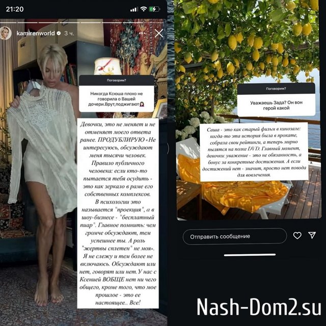Ксения Задойнова не оставила без ответа высказывания Элины Камирен о её семье.