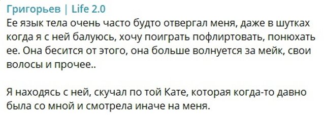 На днях Григорьев обвинил Квашникову в холодности и зажатости, пожаловался на девушку своим подписчикам, чтобы они сделали выводы, почему он уехал в Сочи, и обрушились на Катю с критикой. Но реальная причина поездки давно известна телезрителям. Дело не в том, что Квашниковой не нравилось, как под камерами Игорь себя проявляет, распуская руки и переходя границы, а в том, что топовые пары были разделены для создания новых тем и историй.
