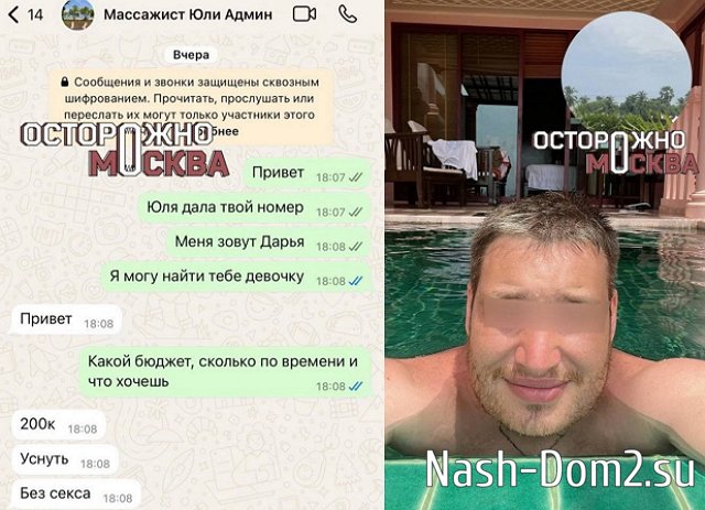 Дарья утверждает, что массажист Артём склонял её к близости, хотя изначально они договаривались, что свидание пройдёт без интима, ей удалось выбраться из квартиры, выпрыгнув в окно со второго этажа. После этого происшествия у Дарьи травмы позвоночника, ног, головы и грудной клетки.