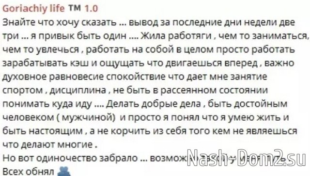Экс-участнику телестройки Алексею Горячему так и не удалось найти девушку после Дома-2. Перебрав огромное количество поклонниц, Горячий всё ещё ищет ту единственную, которая от него постоянно ускользает. Или бежит, теряя тапки?