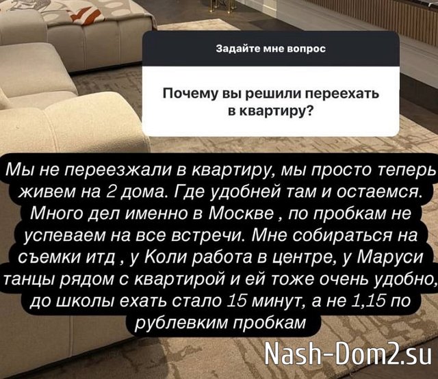 Не забыла Бородина во время общения с подписчиками, аккуратно сообщить, что её мужчина ездит на работу, распложенную где-то недалеко от центра города, как и квартира, в которую они семьёй часто приезжают.