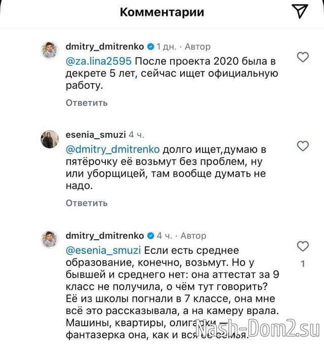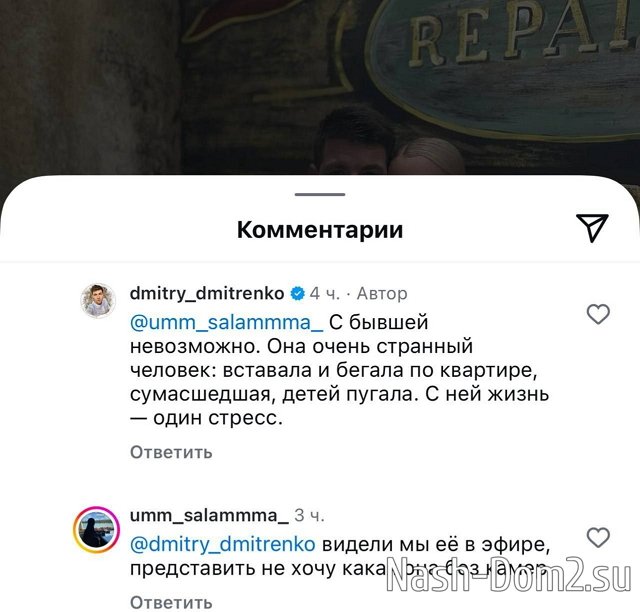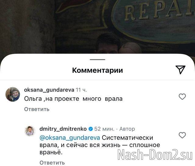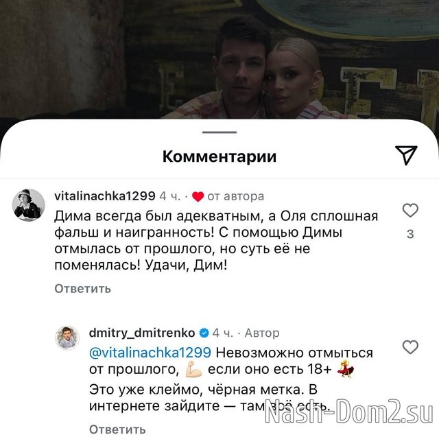 Дмитрий Дмитренко продолжает обсуждать с подписчиками свою бывшую супругу Ольгу Рапунцель.