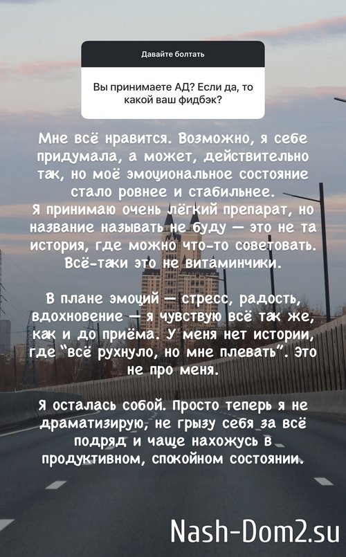 Отвечая на вопросы подписчиков, Татьяна Капаклы призналась, что пьёт антидепрессанты.