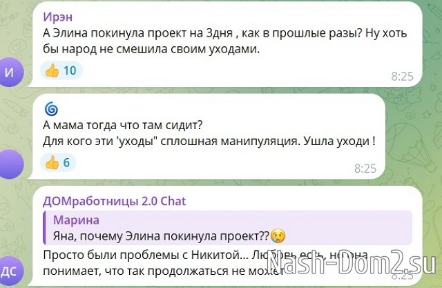 Зрители Дома-2 сомневаются в том, что уход Элины не часть сценария. Друзья, тут даже сомневаться не стоит, потому что Никита обещал сообщить о своём решении в пятницу, по ночам он общается с Рахимовой за периметром, а в субботу конкурс "Новые имена". Разве руководство проекта отпустит двух ярких персонажей и закроет конкурс?