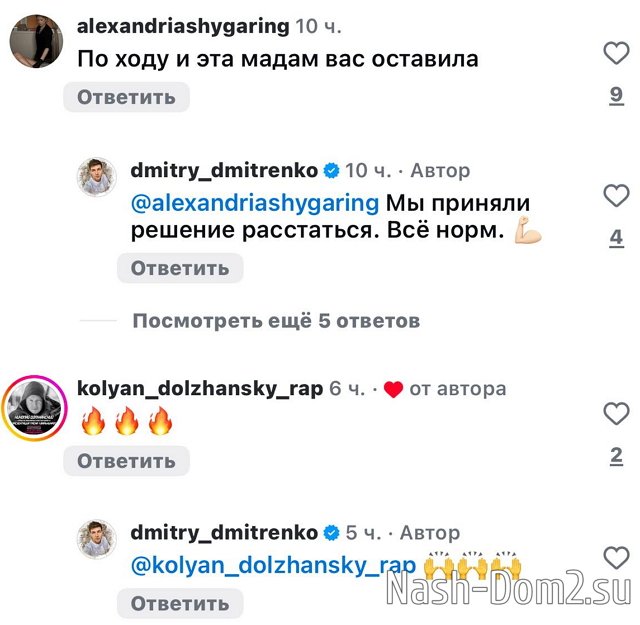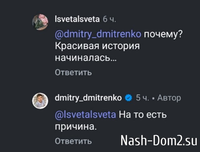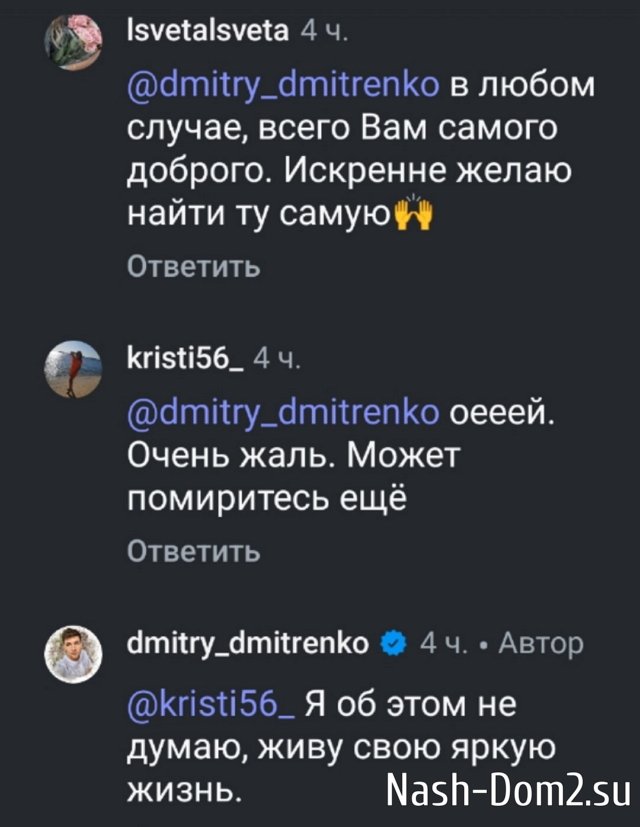 Дмитрий Дмитренко дал понять, что расстался со своей девушкой.
