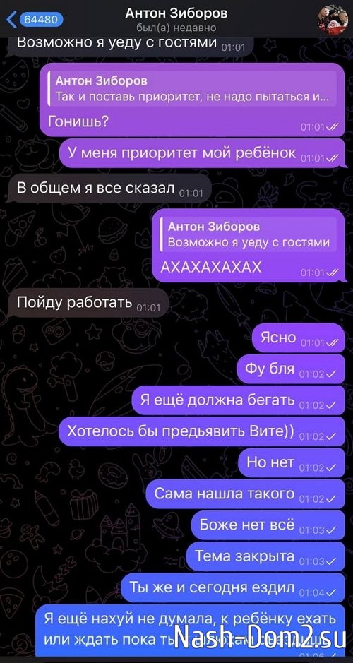 Саша Черно не перестаёт писать оскорбления в адрес бывшего молодого человека Антона, обвиняя его в легкодоступности. Чернявская узнала о закулисных историях в баре "Эгоистка" и выяснила, что её парень не просто кальянщик, а выезжает с клиентками на встречи. В ответ Антон Зиборов разоблачил Александру Черно и рассказал о её работе. Он утверждает, что с проигрыша подписчиков в рекламируемой Сашей игре бывшая участница Дома-2 имеет свой процент.