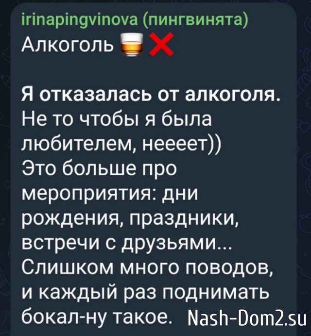 Ирина Пингвинова больше не употребляет спиртных напитков и очень этому рада.