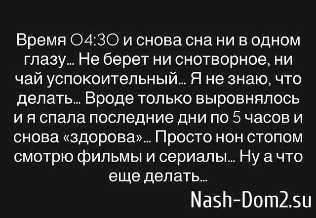 Надежда Ермакова жалуется подписчикам на проблемы со сном.