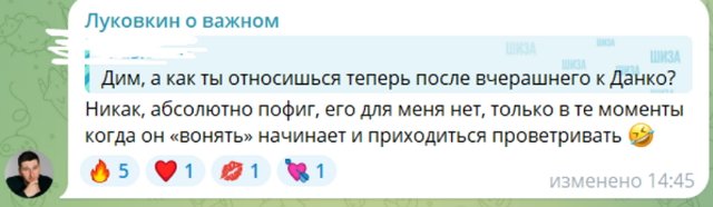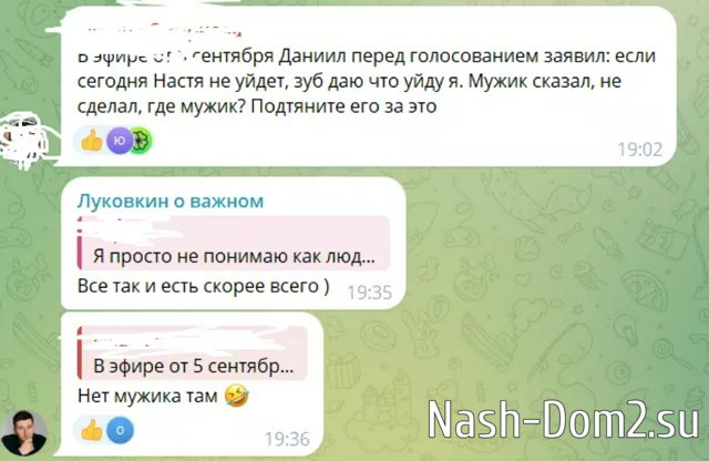 Насте Филипповой придётся стать скользкой и осторожной и лучше ей Луковкина не расстраивать, раз он может быть мстительным и злопамятным. Такие высказывания неприятные в адрес конкурентов, но при этом Дима говорит на камеры, что хорошо относится к Даниилу и Яне. Можно ли ему верить в остальных вопросах?