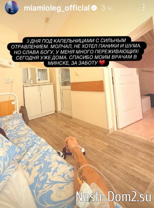 Бывший участник Дома-2, певец Олег Майами объяснил, почему 3 дня провел в больнице. Он получил отравление и не хотел, чтобы представители прессы об этом узнали. Майами находился в Минске, хотя совсем недавно выступал не нескольких концертах в России, где он стал популярным исполнителем и участником популярного реалити "Сокровища императора".