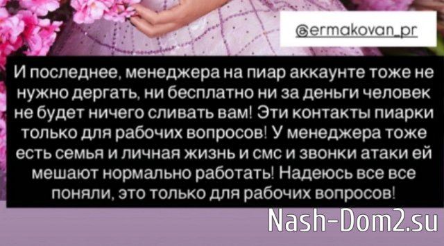 Одному изданию Ермакова дала интервью, другое захотело подослать к ней агента и этот бывший участник всего за 10 тысяч рублей был готов выведывать её тайны. И просил он только деньги на сладости для чаепития и скромный гонорар. Дешево и сердито?