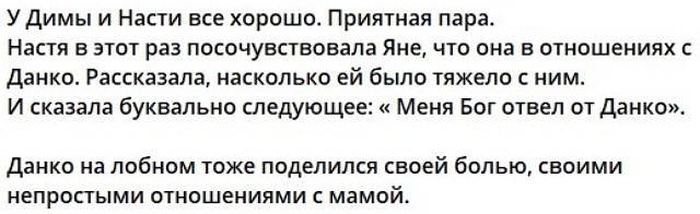 Филиппова, встретив Надежду и Данко на Поляне, начала рассказывать их семейные тайны, а на свидании с Луковкиным в дневном выпуске 14.09.2025 говорила лишь о том, как подстроить голосование, чтобы Данко выгнал маму с проекта или она поссорила его с Яной Тырлышкиной.