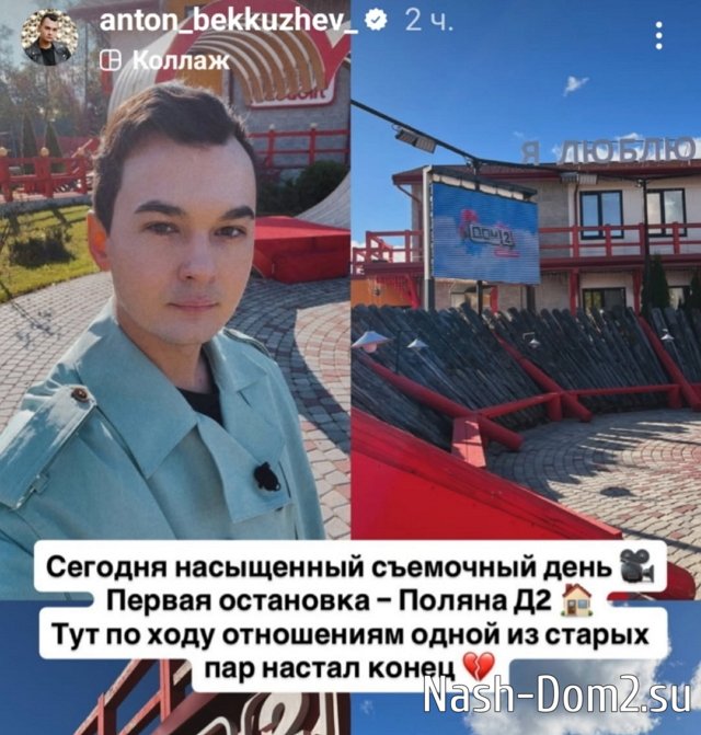 Поскольку Яна Фиткевич, ранее делившаяся новостями со съемочной площадки Дома-2, теперь молчит об этом, то остается выуживать сведения в социальных сетях участников и ведущих. Антон Беккужев создал интригу, сообщив, что в реальном времени рассталась одна из «старых пар», присутствующих в периметре.