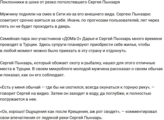 Поклонники в шоке от растолстевшего Сергея Пынзаря