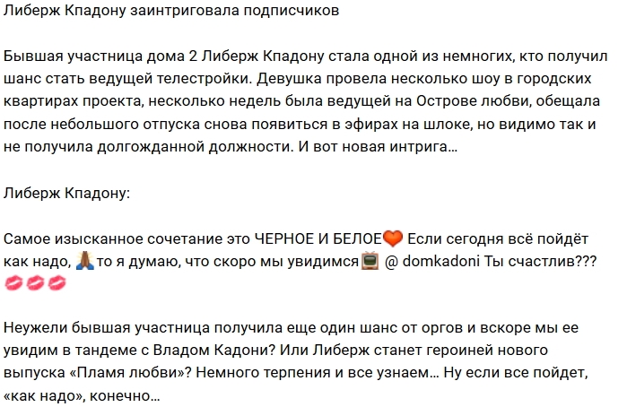 Либерж Кпадону намекает на своё скорое возвращение в периметр Дома-2.