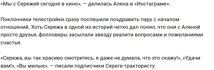 Алёна Савкина отдохнула от насущных проблем в компании Сергея Крылова, который пригласил её в кино.